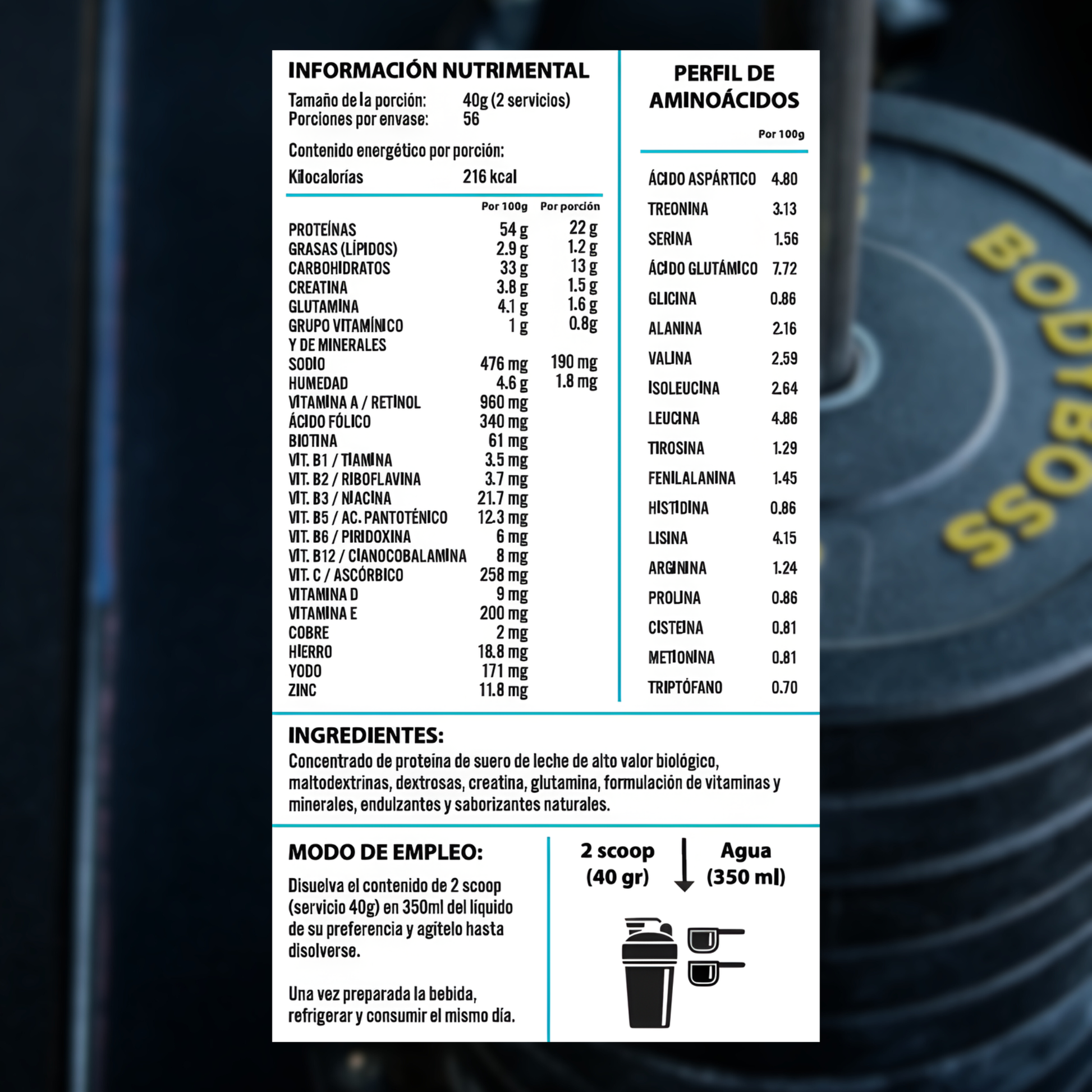 Ideal para atletas que buscan aumento de masa muscular, mejor recuperación, definición limpia y un estilo de vida activo, sin excusas.